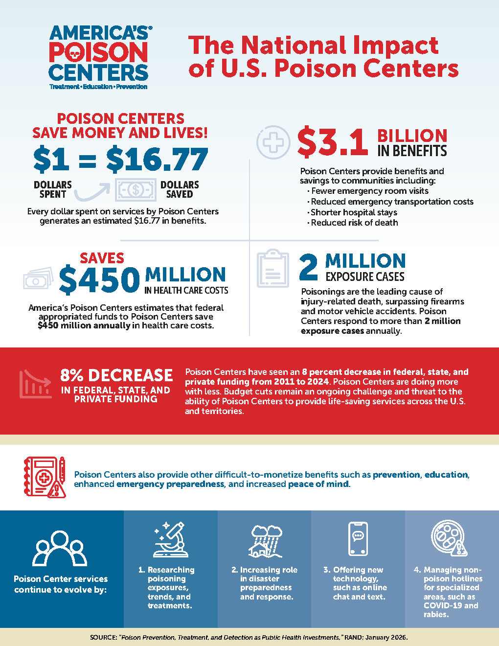 - U.S. Poison Centers reduce medical costs and lost productivity nationwide.